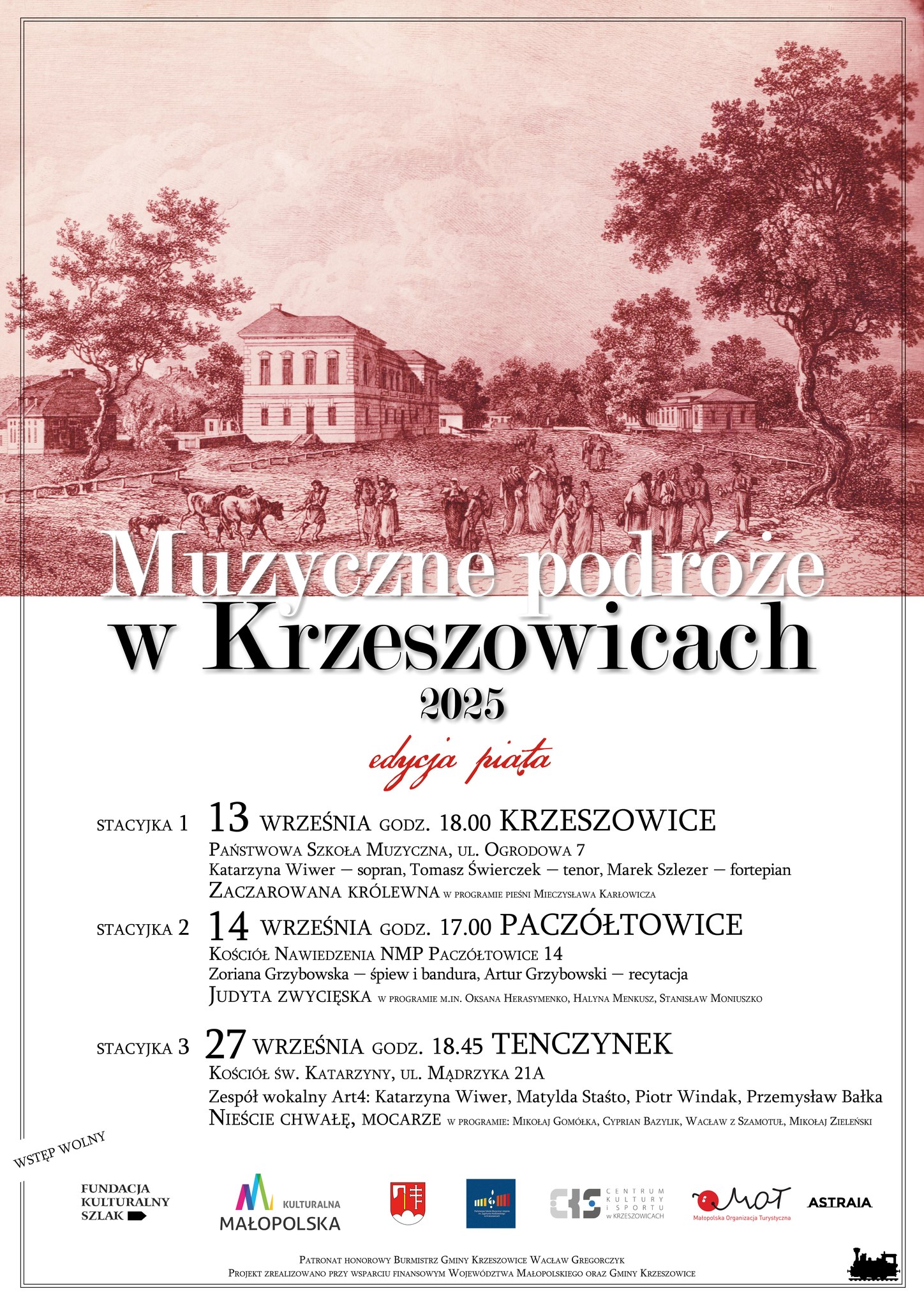 Czekamy na Was na trzech stacyjkach: w Szkole Muzycznej w Krzeszowicach, w pięknym kościółku w Paczółtowicach oraz w kościele w Tenczynku.